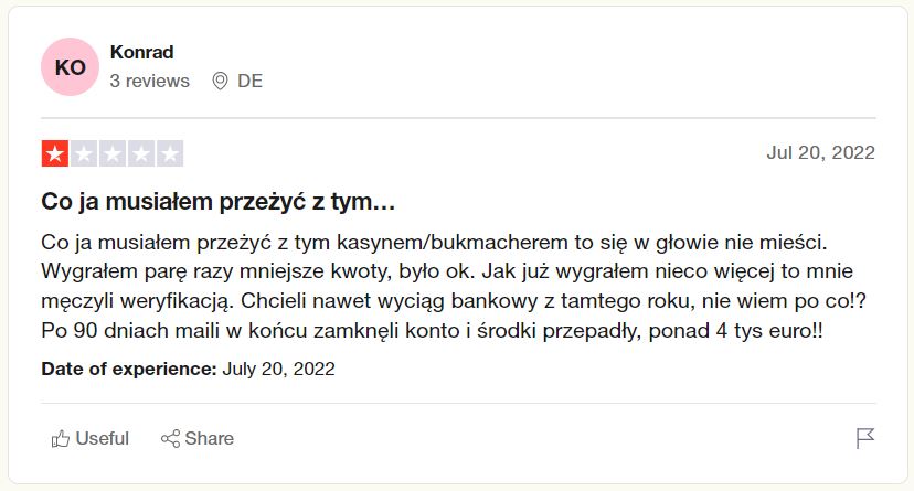 Betinia to miejsce które odwiedza dziennie tysiące graczy. To bardzo popularne kasyno wśród użytkowników. W internecie możemy zatem znaleźć bardzo wiele opinii na temat kasyna. Zdania są oczywiście podzielone, poniewać trudno, aby tak wielu graczy było jednogłośnych. Chcemy przedstawić w naszej recenzji stanowisko wybranych graczy, którzy podzielili się swoimi opiniami w serwisie Trustpilot.